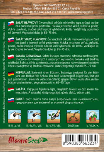 Červenolistá odrůda máslového typu určená pro jarní a podzimní polní pěstování. Hlávka je středně velká, kulovitá, pevná dobře uzavřená, značně odolná proti vybíhání do květu. Vnější listy jsou středně červené. Vegetační doba je 65-75 dní.