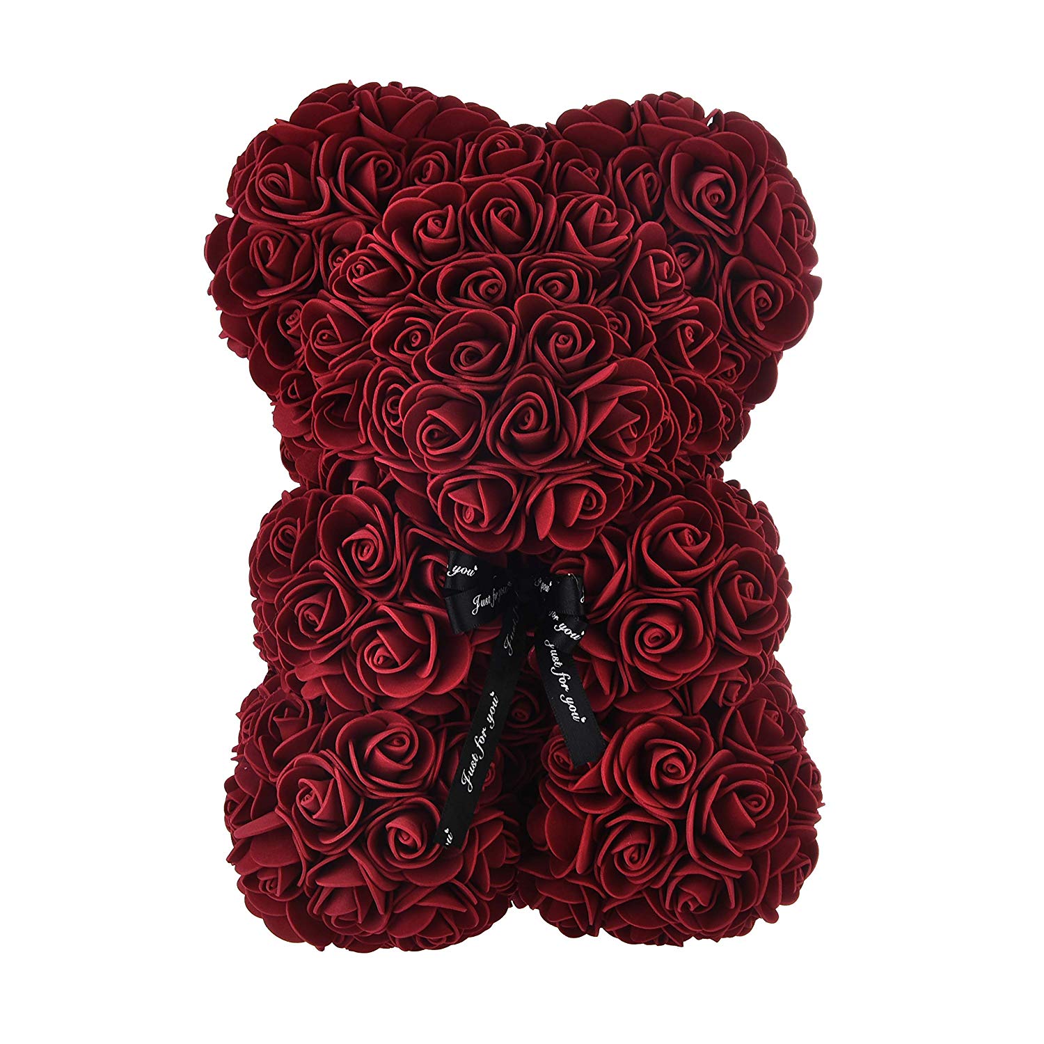 ROSE BEAR - VÍNOVÝ MEDVÍDEK Z RŮŽÍ 25 CM V DÁRKOVÉM BALENÍ