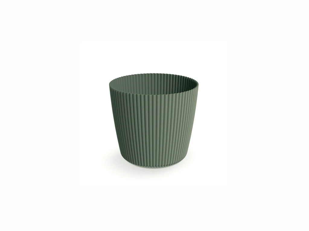 Plastový květináč MILLY ROUND v tmavě zelené barvě.