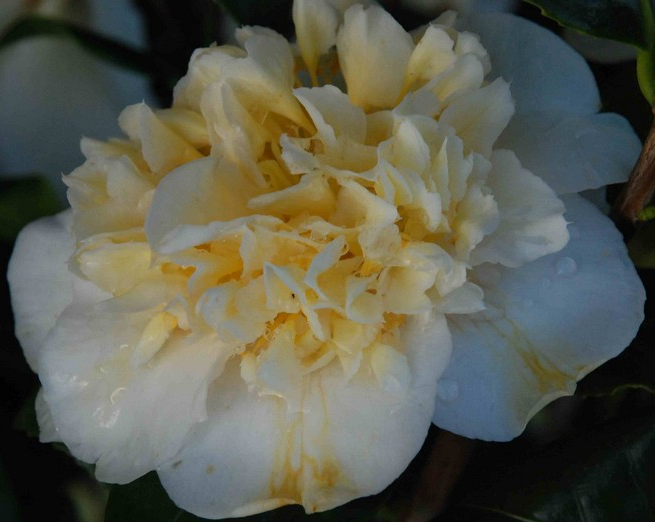 Listy: Kožovité, eliptické, sytě tmavě zelené a velmi lesklé; tvoří perfektní pozadí pro světlé květy