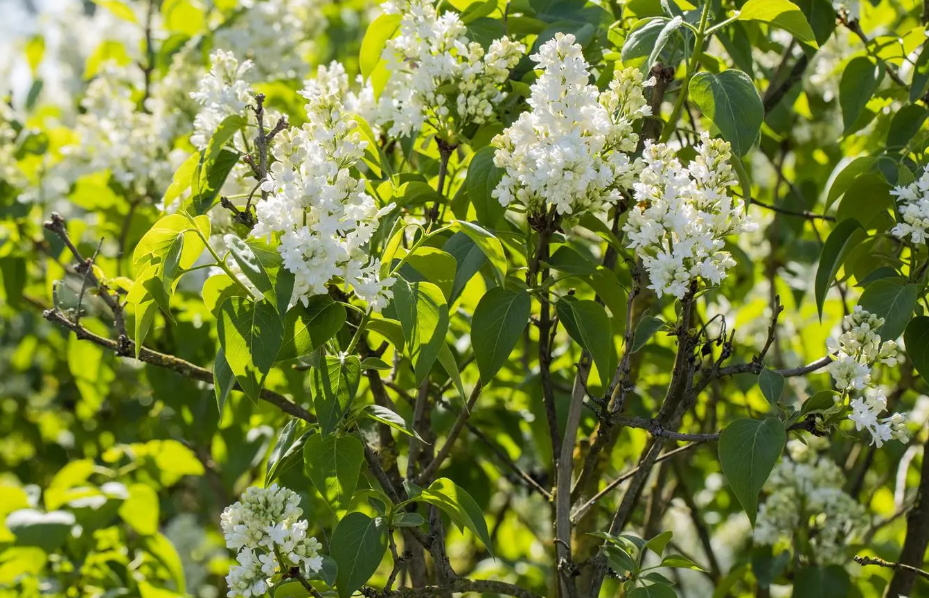 Květy: Plnokvěté, čistě bílé, uspořádané ve velkých a hustých vzpřímených latách. Rozkvétají v květnu a jejich vůně je intenzivní a opojná