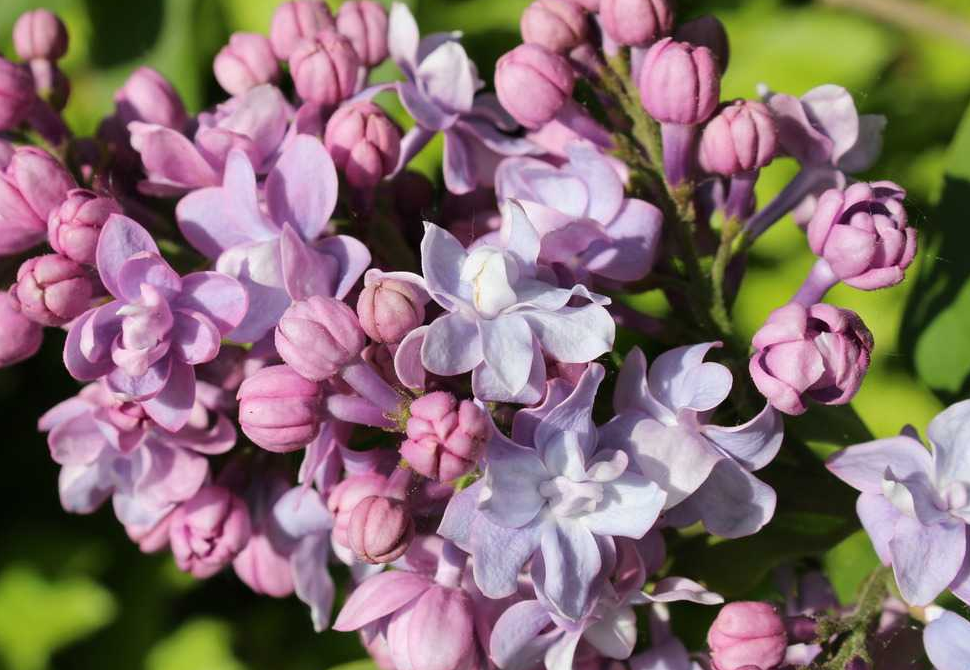 Květy: Středně velké, plné, uspořádané v úzkých, špičatých latách. Barva je levandulově modrá až narůžovělá s bílým středem. Rozkvétá v květnu a šíří sladkou, velmi příjemnou vůni