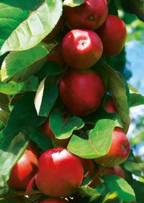 Jabloň sloupovitá 'Redstar' (Malus domestica 'Redstar') na podnoži M26 je zimní odrůda s kompaktním sloupovitým růstem, ideální pro malé zahrady nebo pěstování v nádobách.